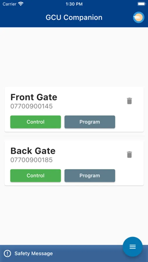 Use these big buttons on your smartphone to send SMS commands to your entry system to open your entrances. Add as many systems as you like.