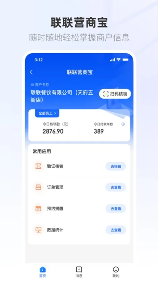 为商户合作提供在线合同签署、到店核销、自助提现、数据服务、门店管理、员工管理、多店共享协作,以便联联集团更好的服务我们商户。简单明了的操作让商户轻松愉快玩转店铺营销,还能快速获取自身行业信息。