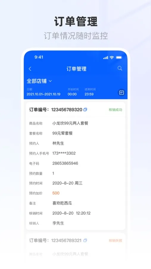 基础功能:收款核销、订单对账、员工管理、门店管理、合同签署