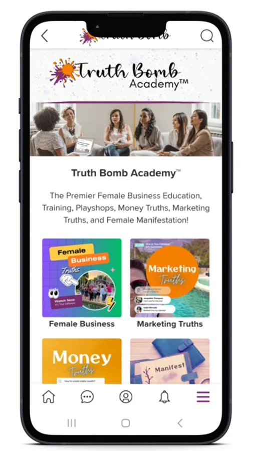 Created for women, by women. When you join Truth Bomb Academy your revenue goes up. Truth Bomb Academy is designed for women by women. We know what you need to be a successful business millionaire while still prioritizing what's important to you. Giving you more confidence, time, and money in your life.
