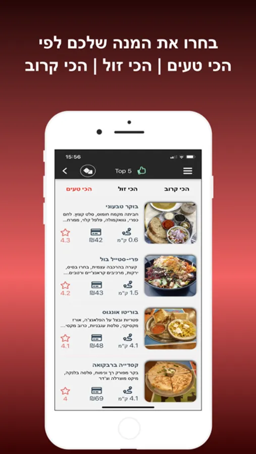 בחרו את המנה שלכם לפי - הכי טעים | הכי זול | הכי קרוב