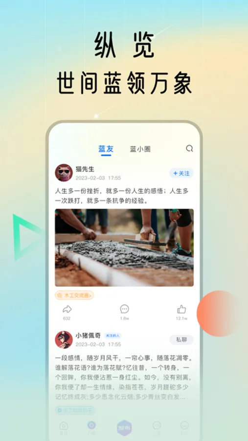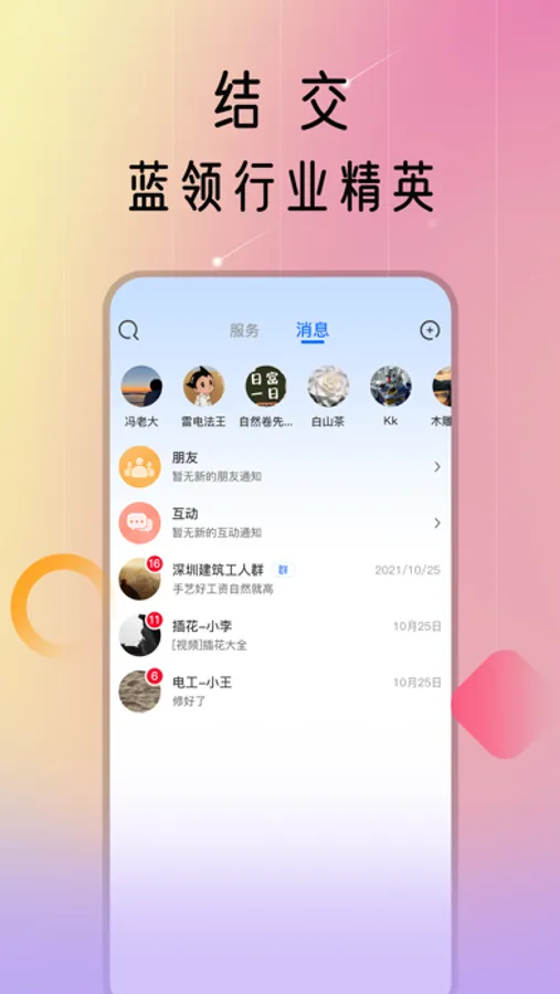 社交:促进蓝领群体内同行业社交,形成蓝领群体同行业的社交圈。