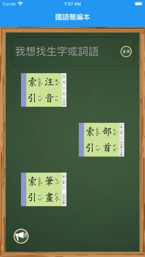 即時查詢「教育部國語辭典簡編本」,依照不同的索引方式查找國字,
