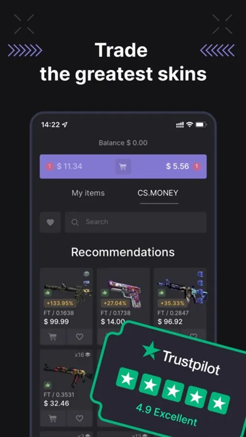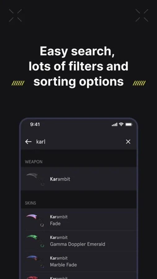 The process of finding the right skin is maximally simplified: there are filters, sorting by price and popularity, detailed inspection of skins.