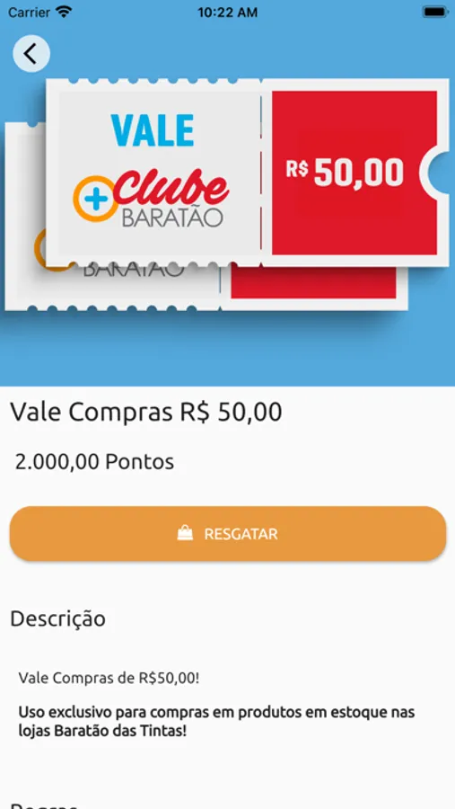 Os pontos usados no resgate serão debitados automaticamente no sistema