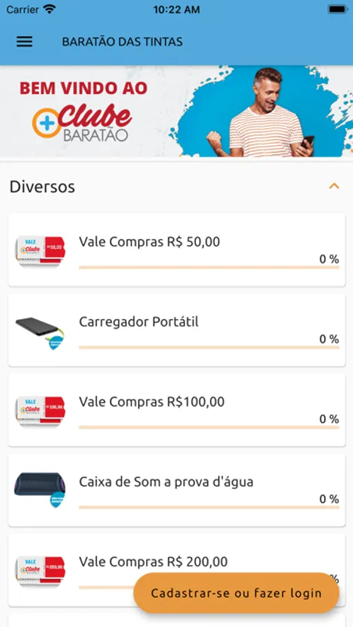 Ao se cadastrar você já ganhou 10 pontos e a cada R$1,00 real gastos ganhará 1 ponto.