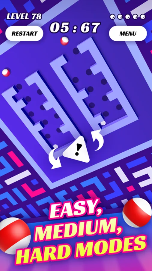 Control two balls in sync. Guide them towards their goals without hitting too many traps or falling off the path. Super fun & challenging.