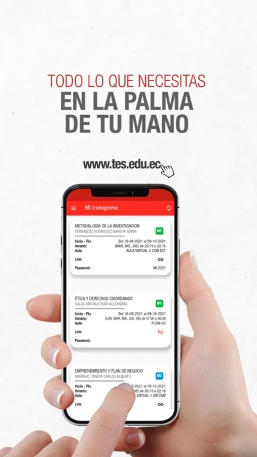 Aplicacion Movil para mayor conectividad entre estudiantes y el Tecnologico Universitario Espiritu Santo, donde tendran la posibilidad de acceder a verificacion de materias, horarios, aulas, docentes, historial academico, notificaciones, link de acceso a clases online, bolsa laboral, radio TES y talleres.