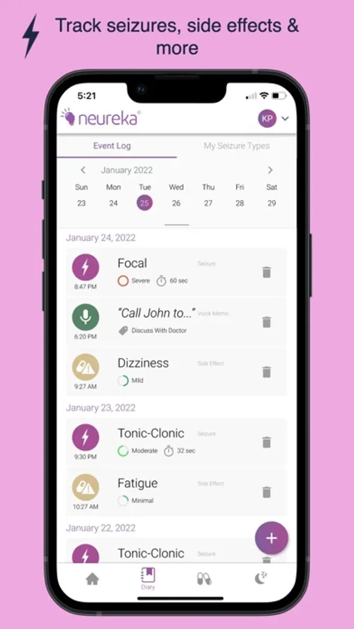 Log your seizures and easily note their type, severity, and duration. Track your seizure-free days and changes in frequency over time.
