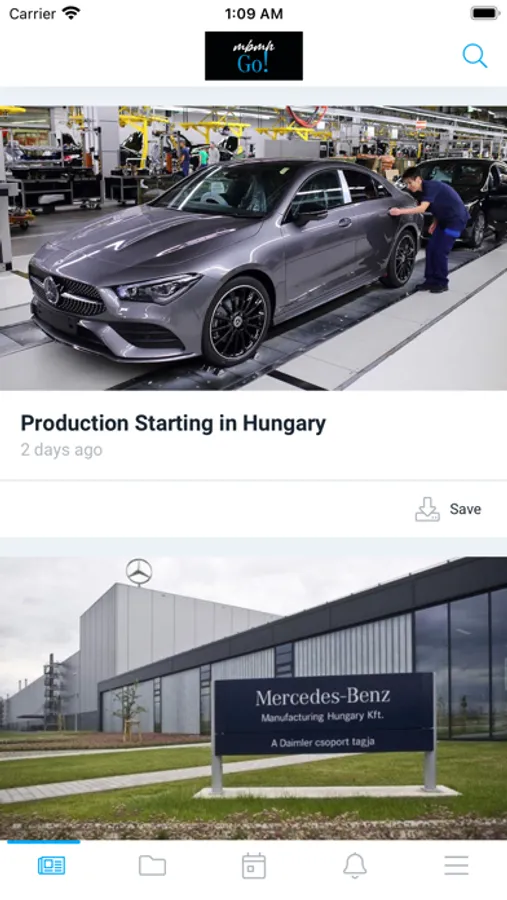 A MBMH Go! telefonos applikáció segítségével azonnal értesülhetsz a kecskeméti Mercedes-Benz gyár legfrissebb híreiről, új eseményeiről. Böngéssz a hírfolyamban, értesülj azonnal a gyári életet érintő változásokról, tölts le dokumentumokat pár koppintással biztonságosan!