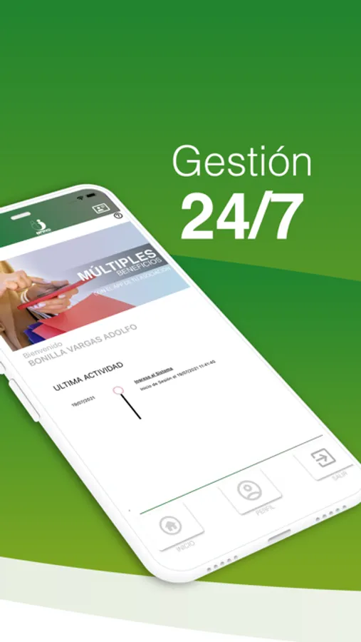 Una oficina 24/7 en tus dispositivos móviles donde podrás disfrutar de múltiples beneficios.