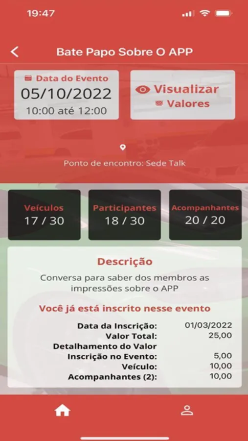 Aplicativo direcionado para gestão de eventos promovidos por clubes.