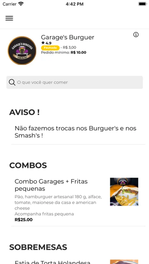 Com o aplicativo Garages Burguer, você pede seu burguer de forma rápida e segura.