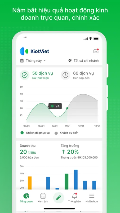 Ứng dụng giúp bạn dễ dàng theo dõi, giám sát hoạt động bán hàng của các chi nhánh, đồng thời giúp bạn so sánh đánh giá hiệu quả kinh doanh của mỗi chi nhánh trong hệ thống.