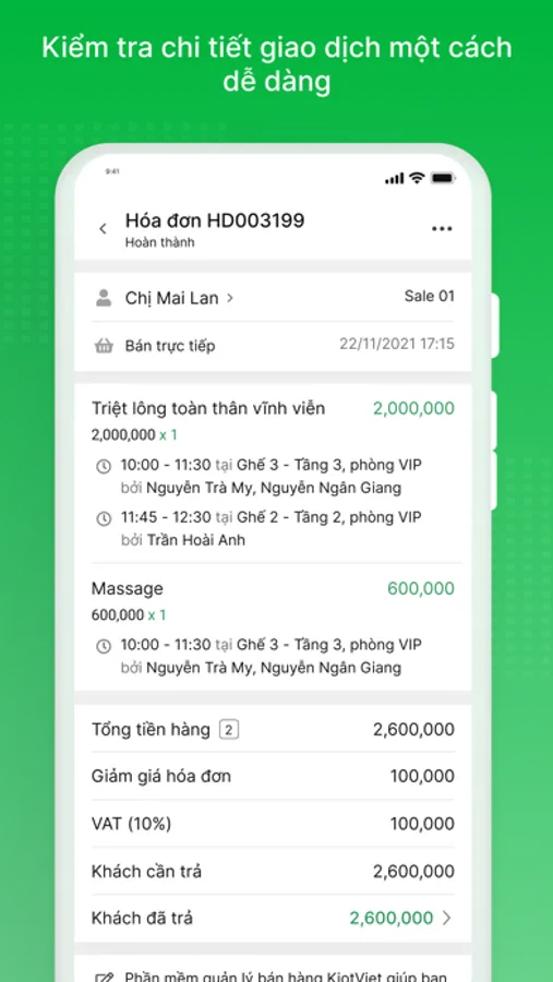 KiotViet Salon là ứng dụng của KiotViet giúp các Chủ hair salon, tiệm Nails, Massage & Spa …. nắm bắt được hiệu quả hoạt động kinh doanh của cửa hàng mình 1 cách nhanh chóng, đơn giản và chính xác nhất. Chỉ bằng việc cài đặt ứng dụng trên điện thoại di động, Chủ cửa hàng sẽ nắm bắt và quản lý được tất cả các lịch hẹn với khách hàng, giao dịch phát sinh, tình hình doanh thu, tình trạng hàng hóa, tồn kho,..bất kỳ lúc nào và bất cứ nơi đâu.