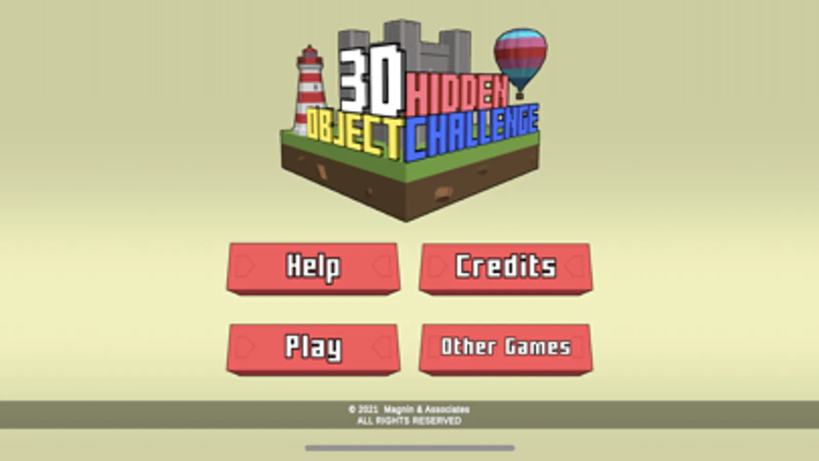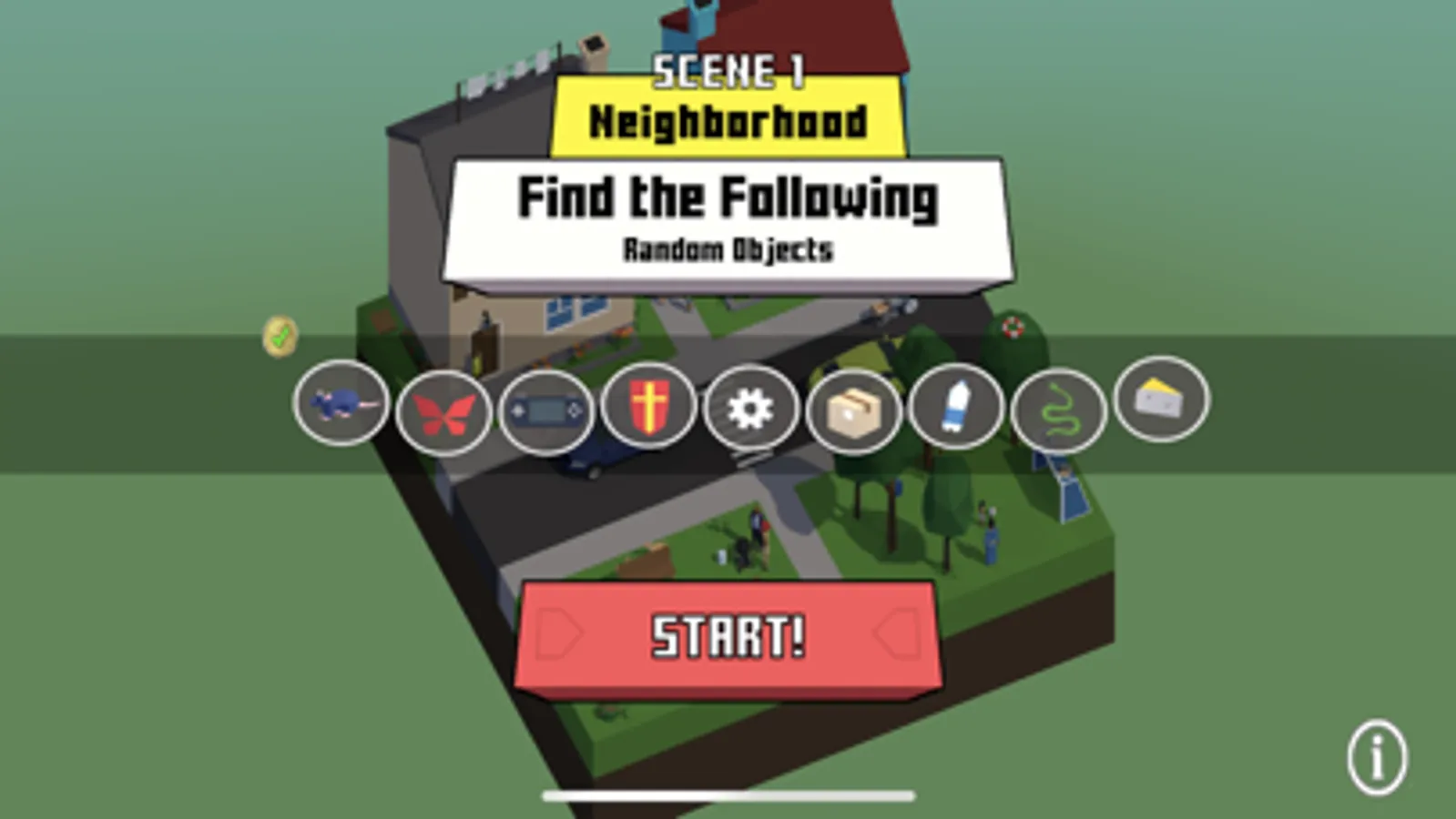Collect all of the hidden objects in each of 12 scenes. Scenes can be completed in any order. Each time you start a level it selects random assortment of items to find,.