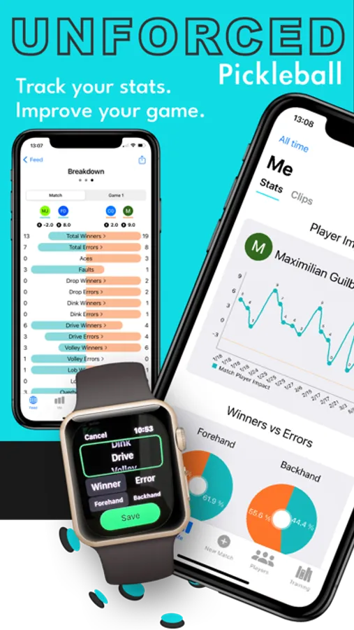 Unforced Pickleball is the leading shot tracking app designed to help you improve your game. With powerful features and intuitive design, Unforced Pickleball is the go-to app for players of all levels.
