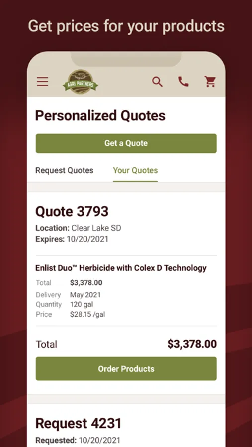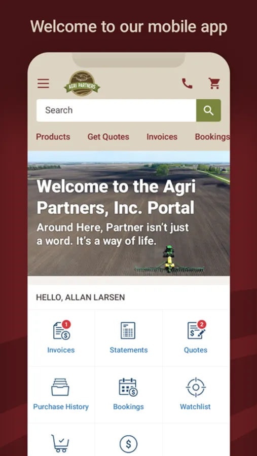 • Access your Agri Partners account information; request a quote, view your previous purchases, and current invoices all in one convenient app.