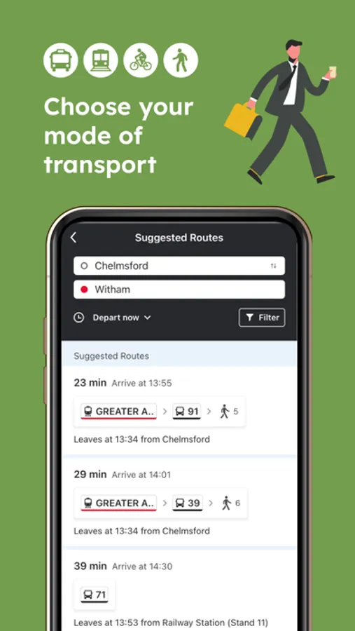 You can view routes and services from multiple train and bus operators throughout Essex all in one