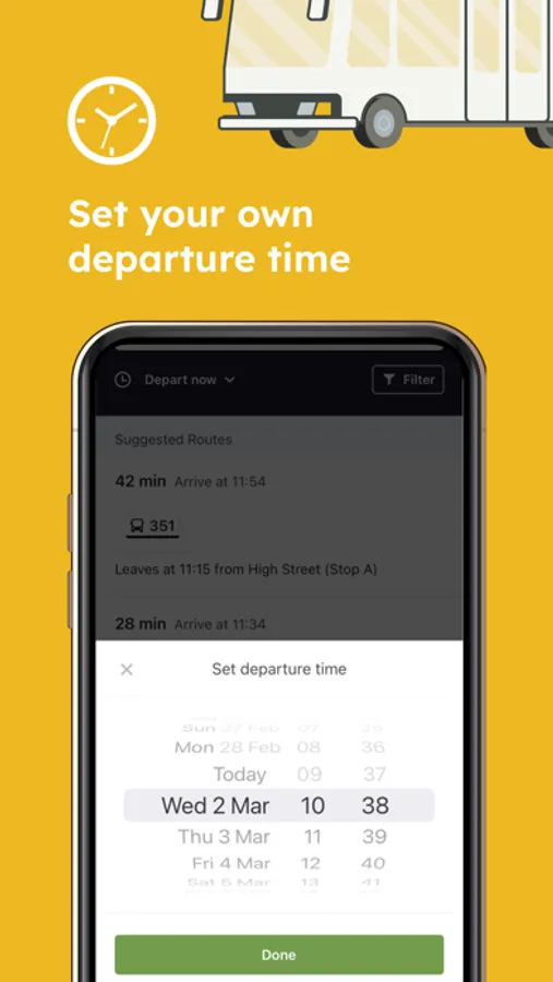 - Want to plan ahead? No problem! You can set your own departure date and time up to 7