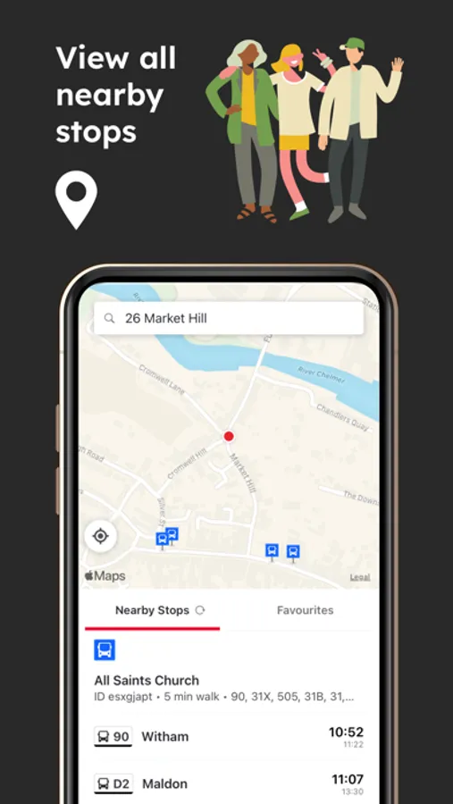 On the TravelEssex app, you can view every stop on bus and train routes, visualised clearly on our