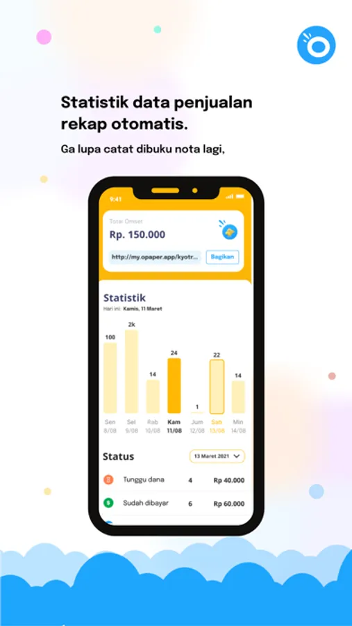 Dari mana saja, kapan saja. Hanya melalui satu kode QR, dengan beragam opsi dompet digital, e-wallet dan bank pilihan. Faktur otomatis terkirim lewat integrasi WhatsApp