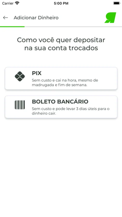 1 Receba seu troco nos estabelecimentos ou deposite saldo pelo pix!