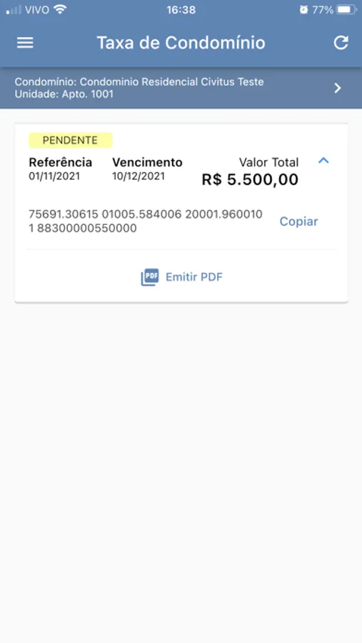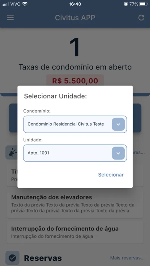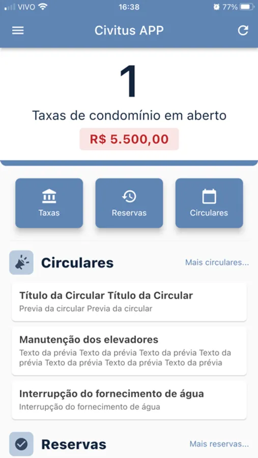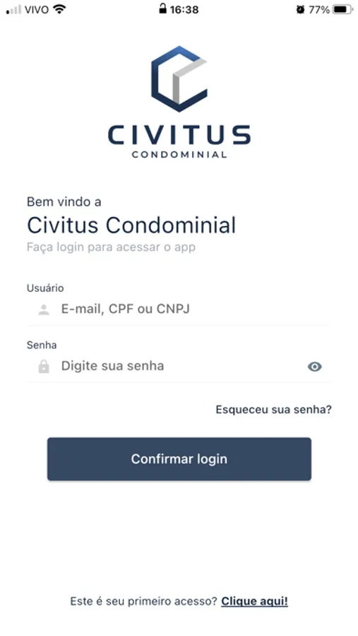 Aplicativo exclusivo para condomínios que possuem acesso a área de condômino da Civitus Condominial.