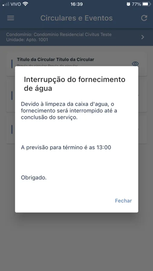 - Acesso a circulares e eventos do condomínio de forma simples e direta.