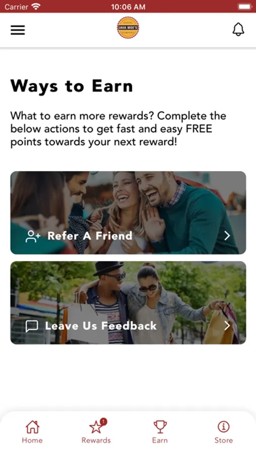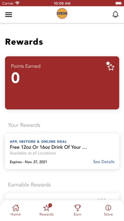 Java Moes Coffee App - Earn and track your rewards at participating stores
