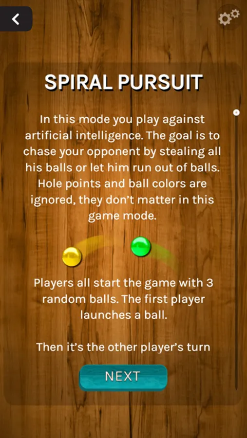 • Spiral 500: the opponents must score points by placing balls in the holes of the same color. The first one to reach 500 pts win the game.