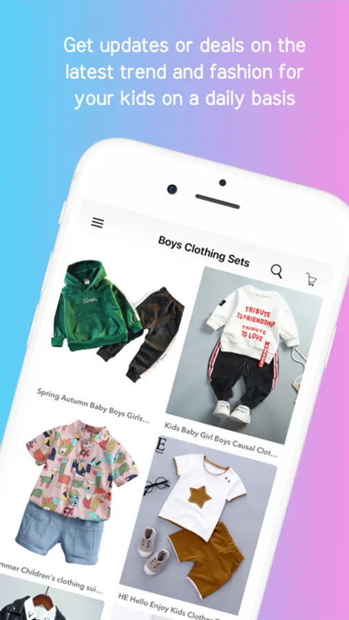 To satisfy the desire of mothers who want their children to look beautiful and attractive, this application provides the best reference for children dress. lots of content that will be found in applications such as baby clothes, girls dresses, kids clothes, baby girl clothes, dresses for girls, girls party dresses, baby dresses, baby girl dresses, kids wear, newborn baby, clothes boys clothes, kids clothes online, dresses for kids, baby boy clothes, little girls dresses, toddler clothes, kids suits, baby fashion, children's clothing, newborn clothes, baby clothes for boys, newborn baby girl, clothes cheap baby, baby suits, baby clothes for girls, infant clothing, and much more will you get in this app. Now you can purchase your favourite products by just one click. Wish you have fun in online Shopping!
