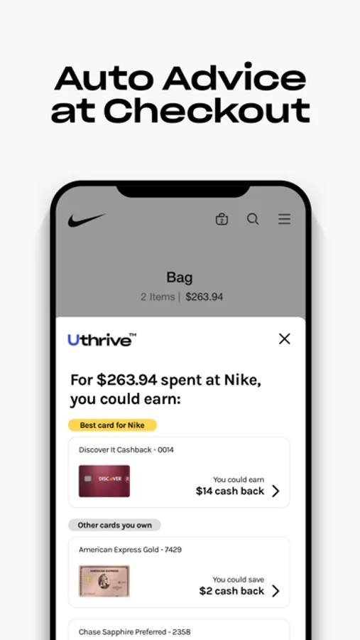 Uthrive enables you to maximize savings and rewards on your purchases - by recommending the right credit card for every purchase. Whether you're shopping for groceries, dining out, booking travel or anything else, Uthrive has you covered.