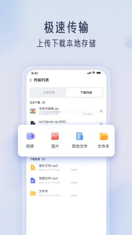 3、文件秒传:任务传输中断不必从头重传,块级秒传,减少文件传输时间;