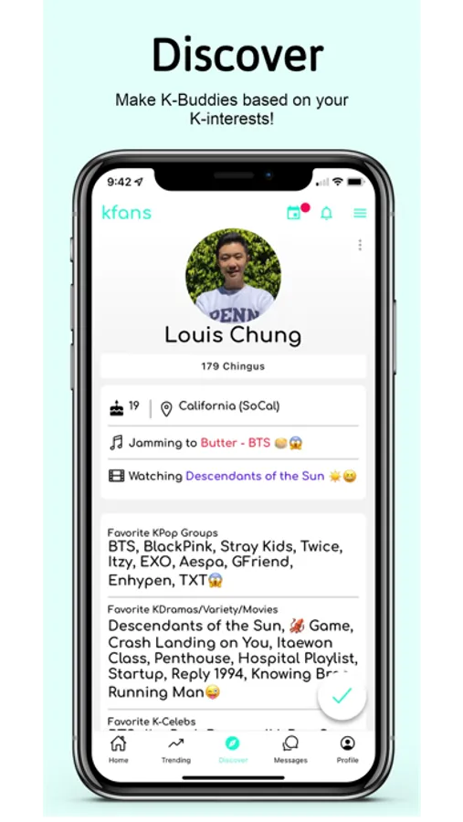 *Discover KPop and KDrama fans and become K-Buddies based on your K-interests