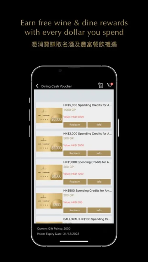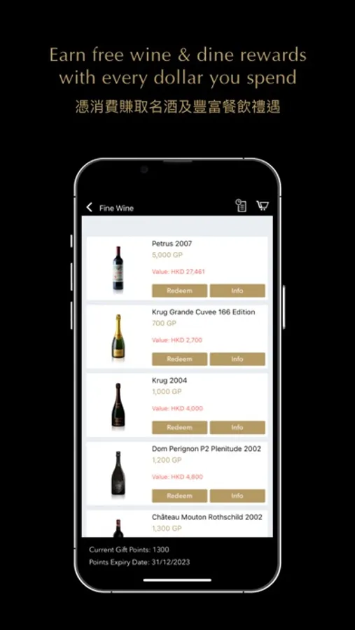 Earn cash vouchers for complimentary meals and First Growth fine wines with every dollar you spent