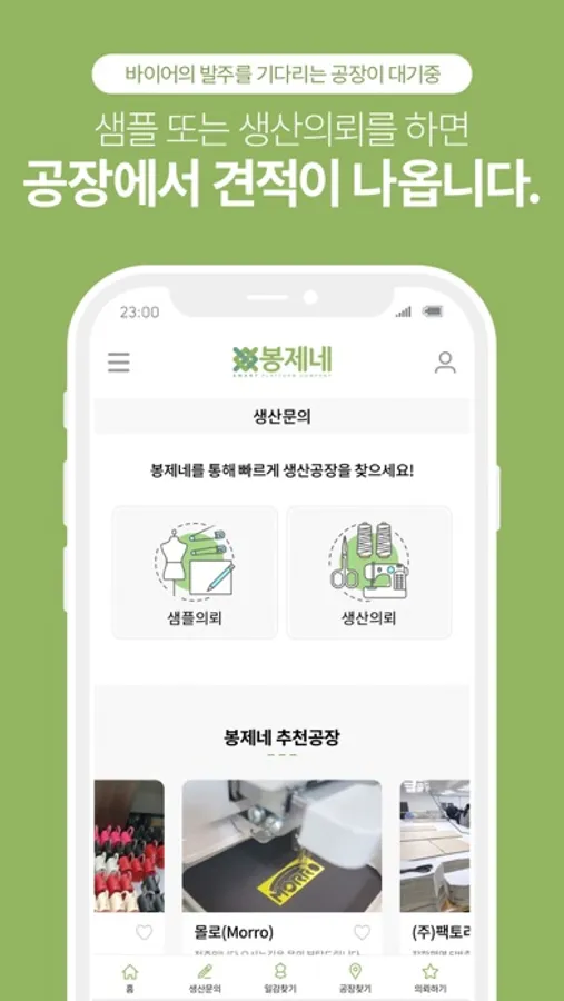 - 샘플 및 생산 의뢰 기능