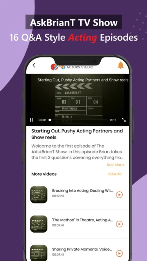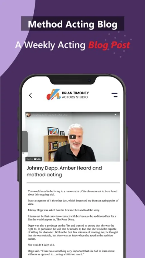 Brian Timoney, one of the worlds leading method acting coaches has created an acting packed app, that will teach you how to take your acting ability to a top level and navigate the business of acting.