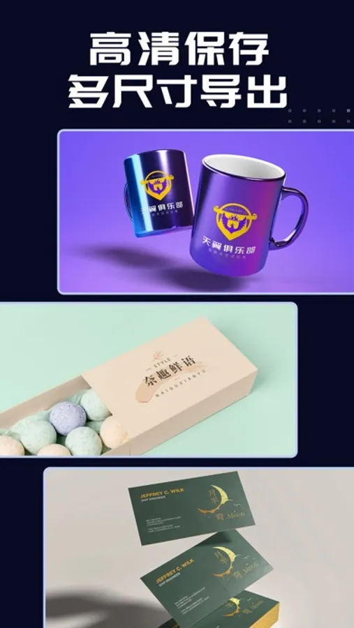 多尺寸导出:除了用作logo的标准样式,还可选择其他尺寸用于手机壁纸、抖音封面、日签、名片、朋友圈封面、头像。