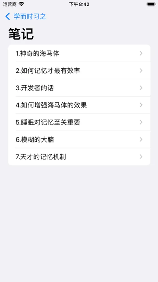 开发者把一些关键的知识点整理成句子,放在APP里,每次打开APP都能顺便看一眼,增强对这些知识的理解与记忆。