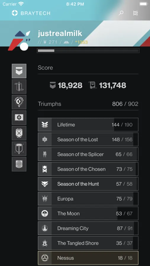Braytech is a fan-made Destiny app which allows users to view and map checklists, track and view triumphs, inspect collectibles, and so much more.