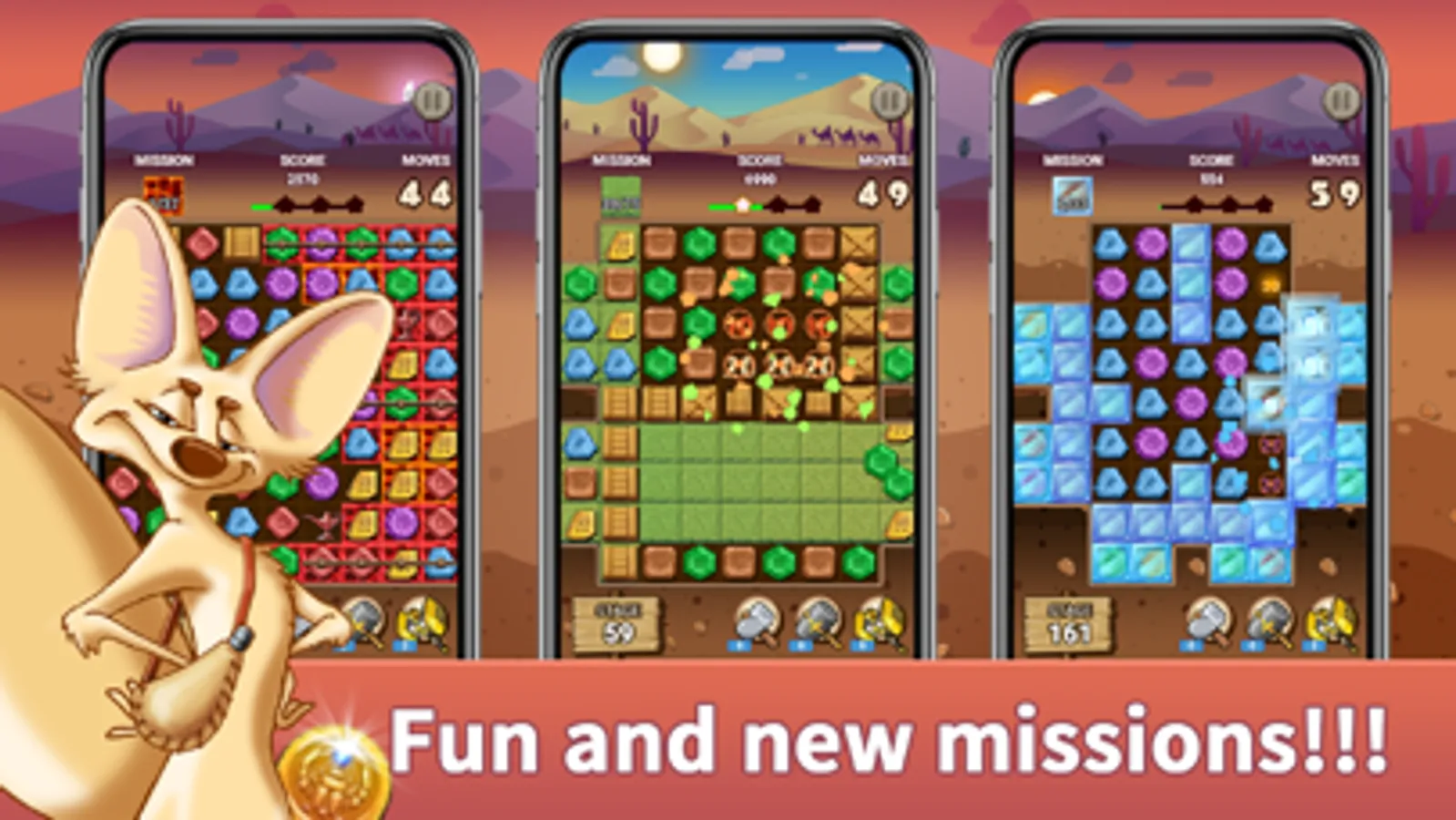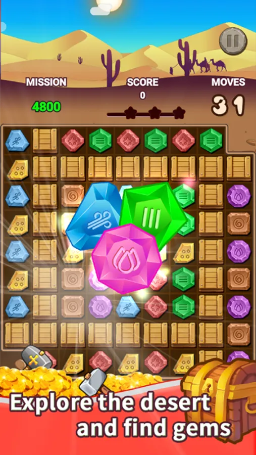 While exploring the hot desert, find oases, gems, and ruins to solve various missions and become the best explorer!!!
