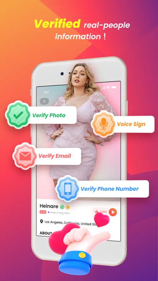 More than 4 types of verifications to make sure there are all real profiles. Meet real people nearby in the community.