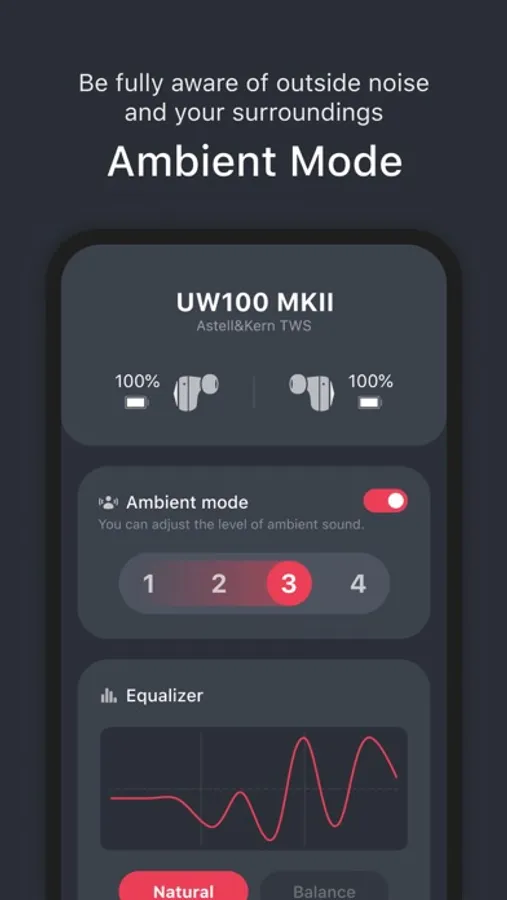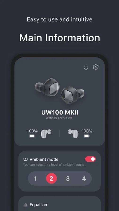 Using the AK Control app, you can connect the UW100, UW100 MKII to a smart device to check the status of the earbuds and set up the environment to use the earbuds.
