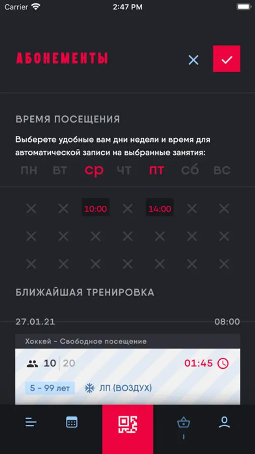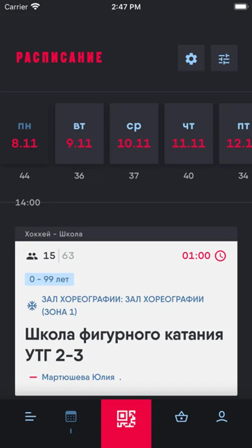 На основе купленных услуг и абонементов проходить через турникеты с помощью сгенерированного QR в приложении.