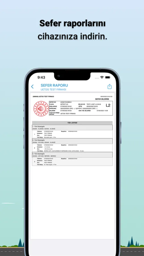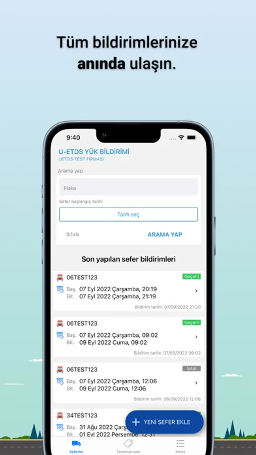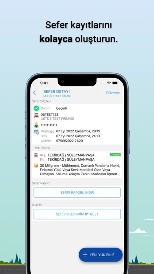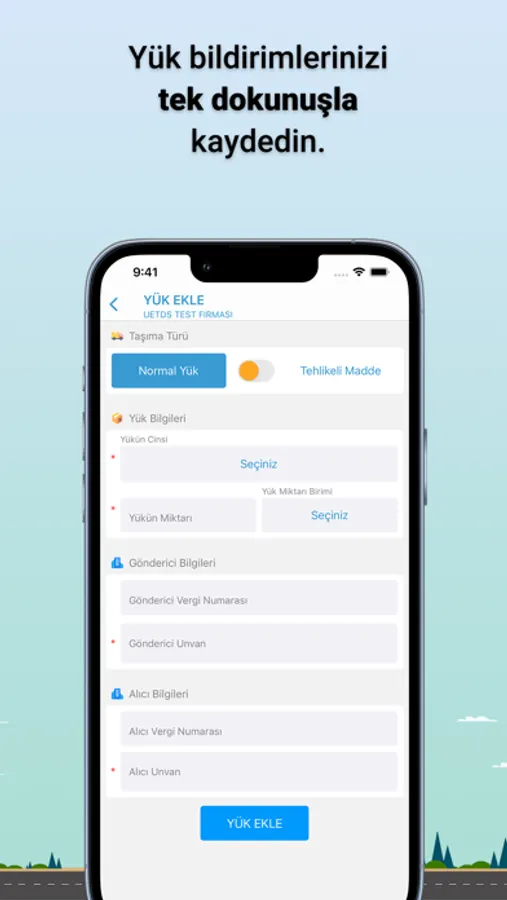 - UETDS yük taşıma bildirimlerinizi mobil cihazınızdan pratik bir şekilde kaydedin.