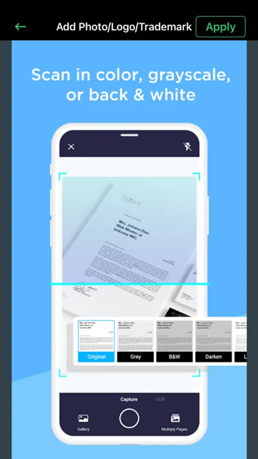 Scanner for iPhone: Scan documents in grayscale, black, white, or colored as much as you desire.