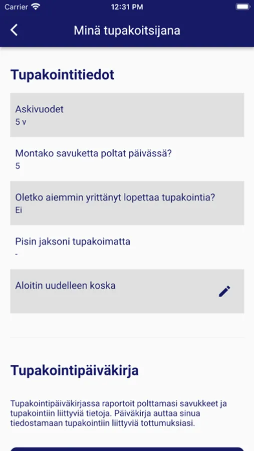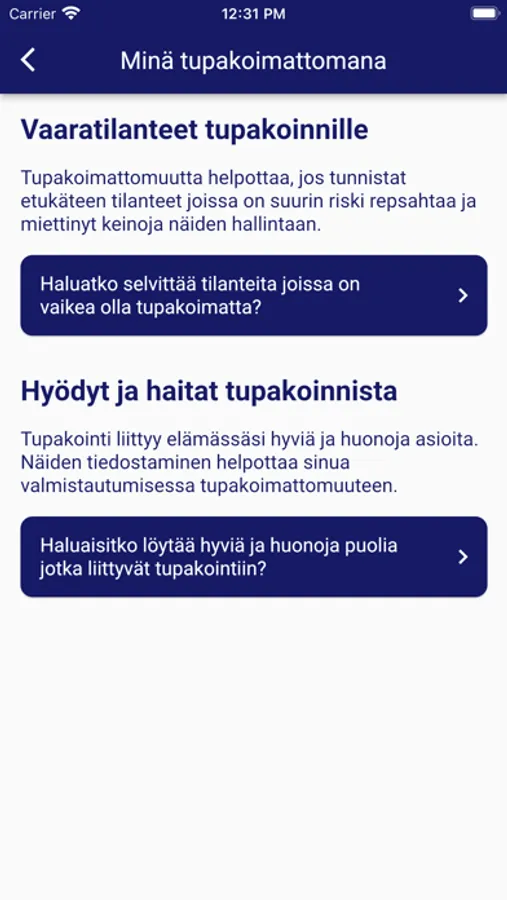 Tupakoinnin lopettaminen on vaikeaa. Suunta - sovellus auttaa sinua tupakoinnin lopettamisessa ja tukee sinua tupakoimattomuudessa yksilölliset ominaisuudet huomioiden.