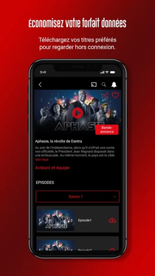 • Economisez votre forfait de données. Téléchargez vos films/séries pour regarder hors connexion.