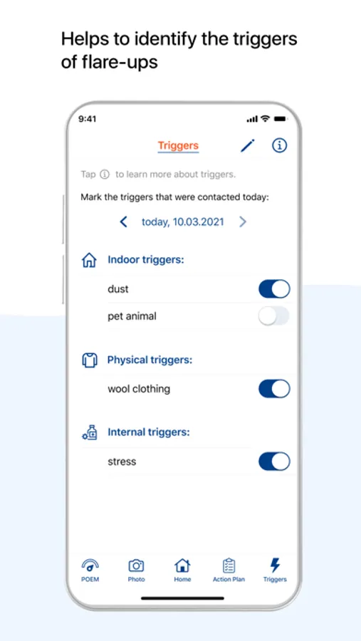Eczema manager helps you identify and exclude triggers for eczema flare-ups